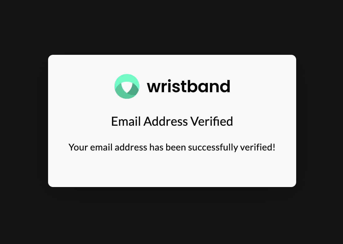 Wristband-hosted Email Verification Page shown after clicking the action link in the verification email.