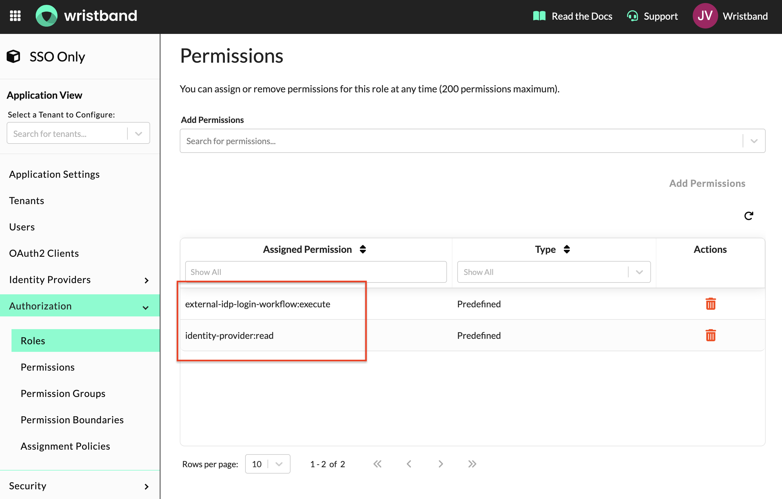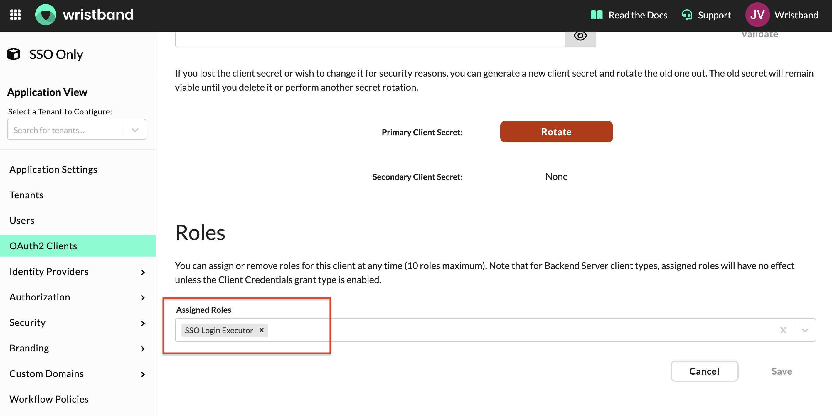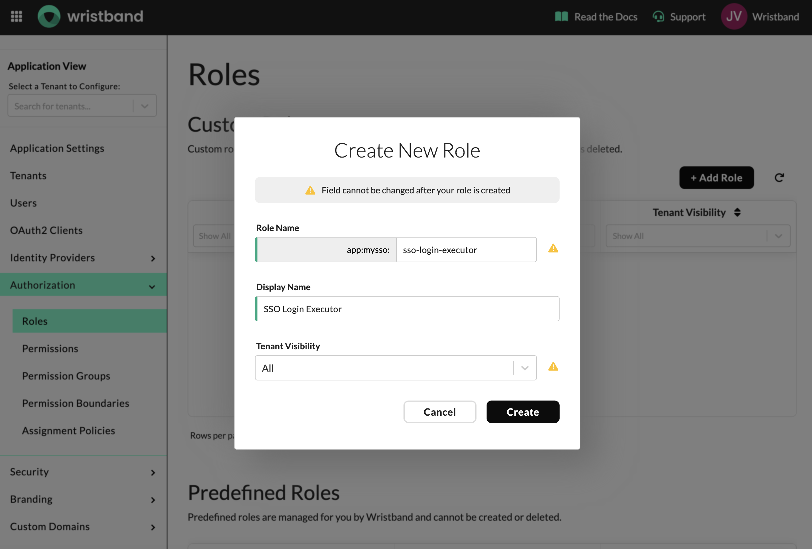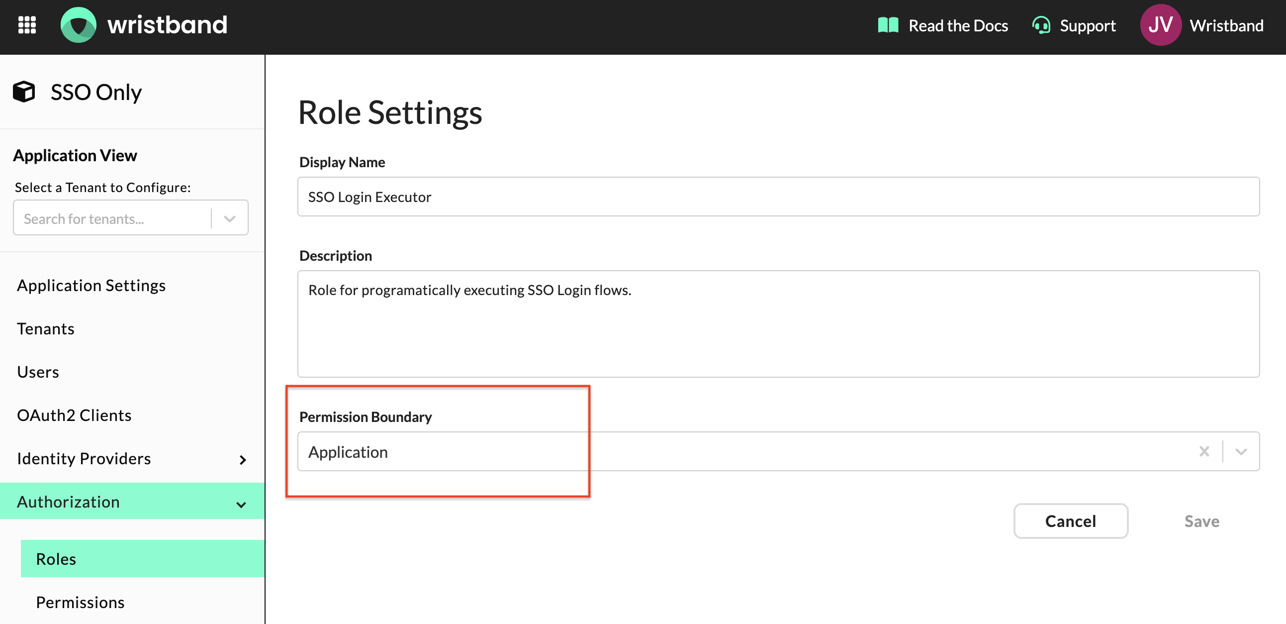 Next, create a custom role in the Wristband dashboard. This role grants your application the access needed to execute the SSO flow.