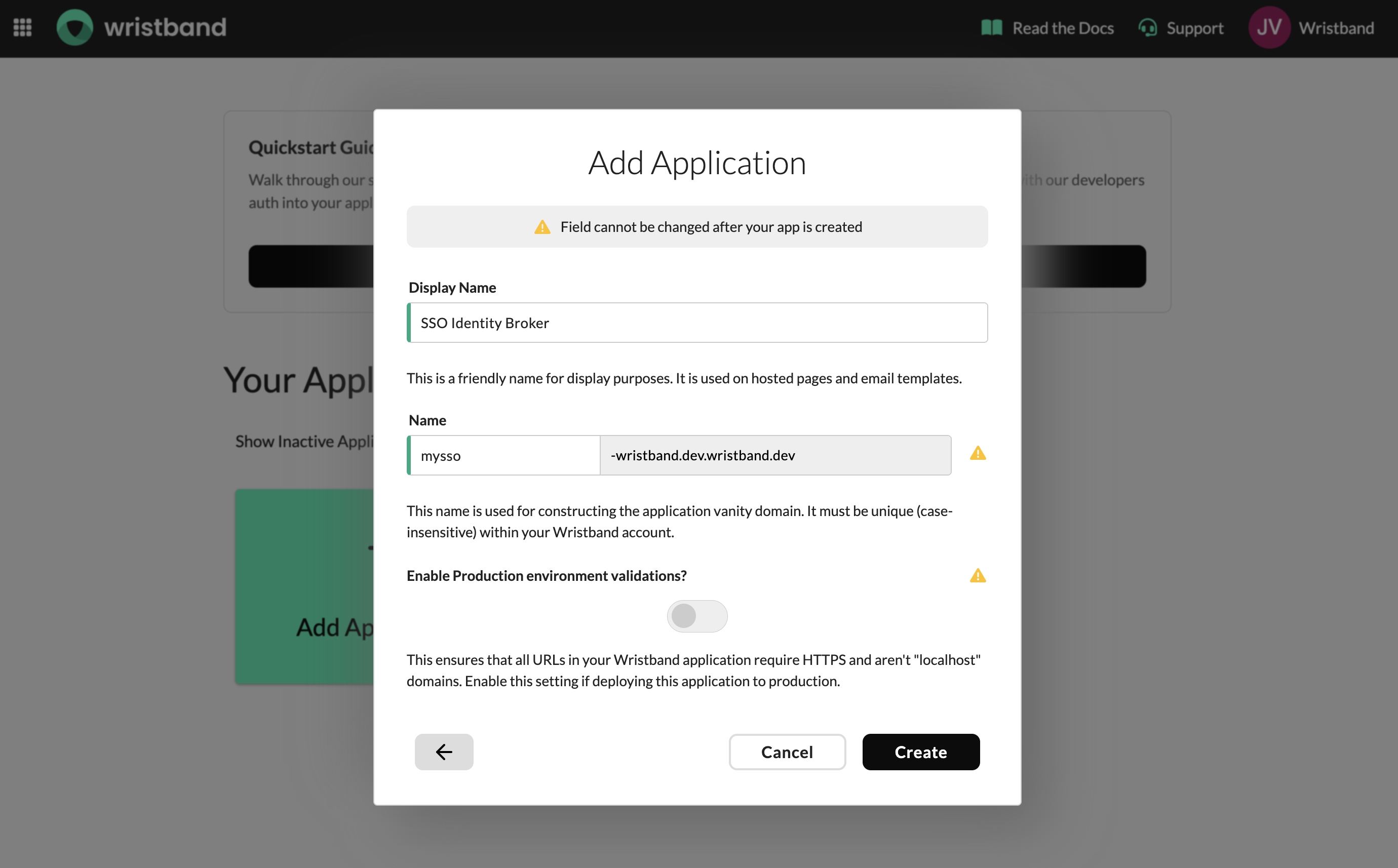 Create an app manually in the Wristband dashboard.