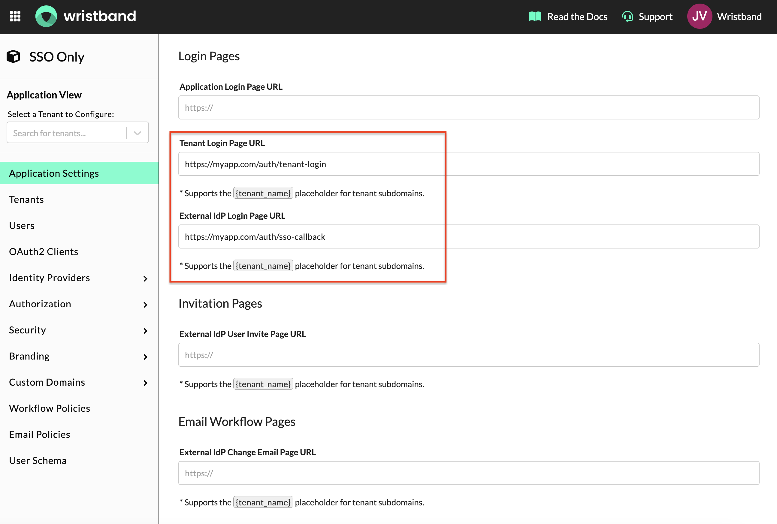 Tenant Login Page URL: This value should be set to an endpoint in your server. It receives the authorization request token from Wristband after it validates the authorize request, passed as the