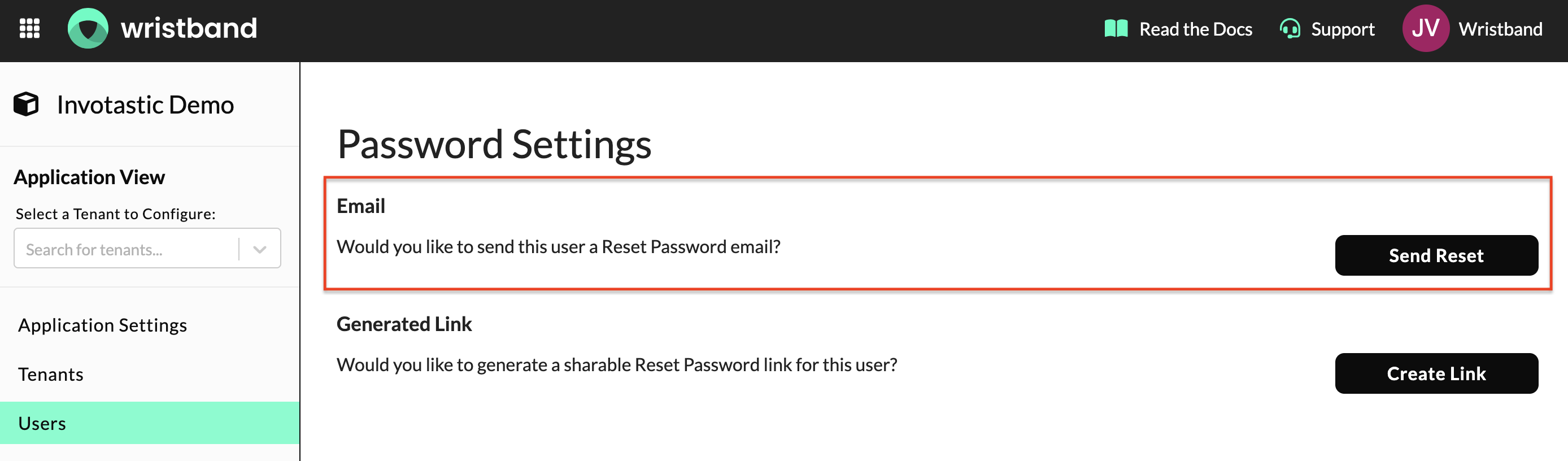 In addition to the user-initiated Forgot Password flow, Wristband supports admin-initiated password resets from the Edit User Page in the Wristband Dashboard. Admins can do any of the following: