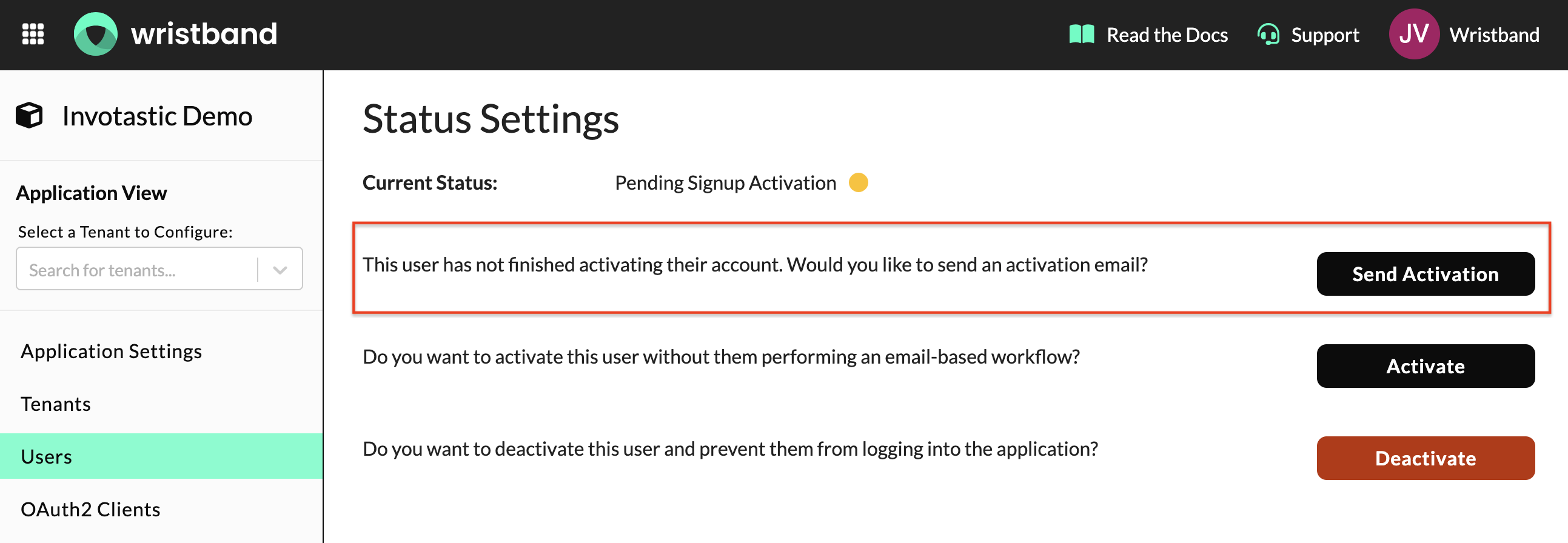 You can also send activation emails directly to users from the Wristband Dashboard via the Edit User Page.